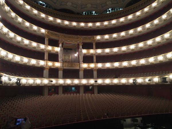 Mit dem Bus ging es am Freitag (18.01.2019) mit 33 operninteressierten Schülerinnen und Schülern direkt zum Bayerischen Nationaltheater. Dort angekommen wurden wir durchs Opernhaus geführt und konnten neben dem Orchestergraben auch die Haupt-, Seiten- und Probebühne besichtigen. Auf 2000 m2 Bühnenfläche werden tonnenschwere Bühnenelemente in kurzer Zeit hoch und runtergefahren, verschoben oder hereingeflogen. Ein Team von ca. 1000 Angestellten arbeitet für die rund 150 Vorstellungen im Jahr und sorgt dafür, dass ein Opernabend zu einem unvergesslichen Erlebnis wird.