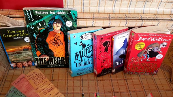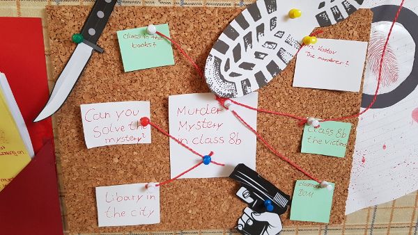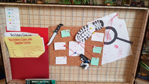 Of course, some books are more difficult and some easier to understand. So we marked the easier and the more difficult ones with different colours. But it is no problem if the students don’t understand every word because we have collected a list of words that are helpful if you read crime or detective books. We also created bookmarks with reading strategies on them that can help you if you have problems understanding something.