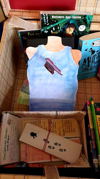 With our English teacher, Ms. Kostov, all the students of class 8b did a project in which we all read a mystery, detective or crime book that we could choose by ourselves. With these books, we decided to create a reading box. It is a box that contains all the books we read. To create the reading box, we did different activities. We, for example, thought of a system to organize the box, we designed and decorated it and we wrote cards and posters with our reviews of the books. We also selected the best six books from the ones we read.