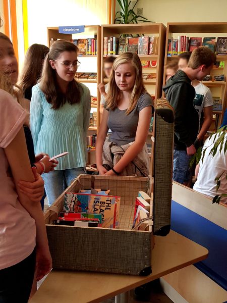 We wanted to design the reading box because we wanted to give the students the opportunity to read English books and not only German ones. We also liked the idea of sharing the books we can really recommend to others. The students should definitely borrow a book from our reading box because it is great fun reading English books and learning new words and expressions. What is also important is that the books are not complicated to understand. If you are still unsure, we can tell you it is no problem to read a book from our box, because it also contains easy books, like comics. Another aspect is that the books are all very exciting and approved of by all the students from our class. If you want to make sure you will borrow a really fascinating book or comic, you can choose one of the books that we marked as “best books”. The books can be borrowed in the “Leseinsel” after the summer holidays. But of course, you can already have a look at them now.