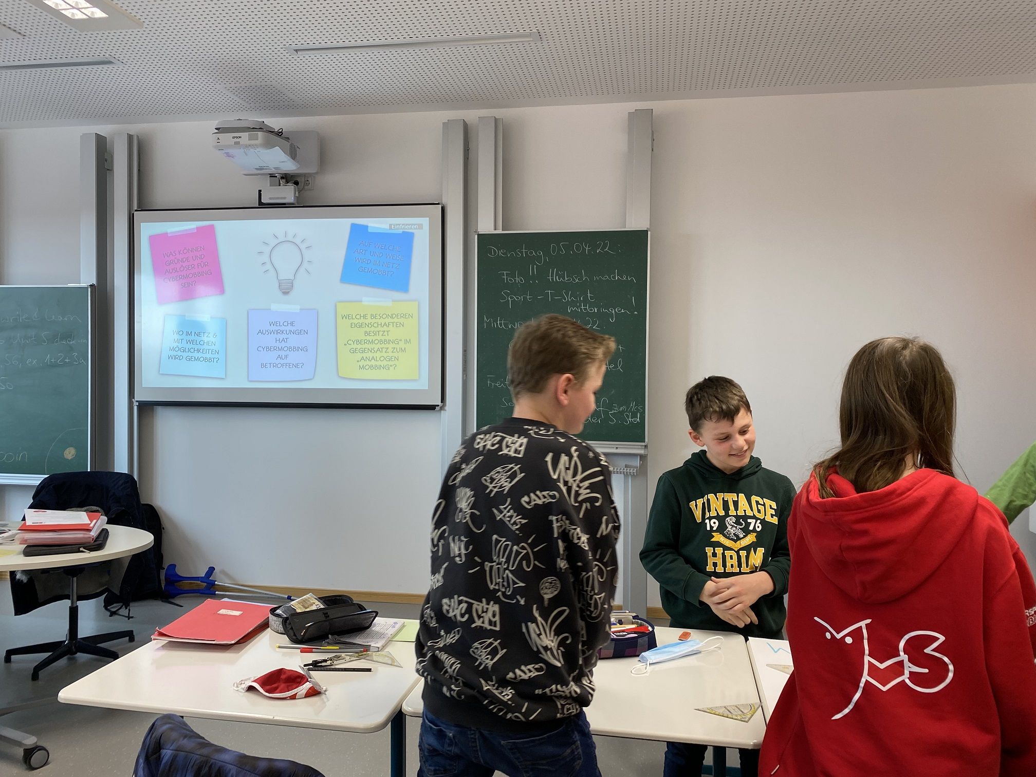 In der Woche vor den Osterferien fanden die Workshops zum Thema Cybermobbing für unsere Fünftklässler statt. Hannah Günther, Julian Ziegler, Lea Hüttl, Linus Grimminger, Elisa Wink, Christian Oudintsov und Anna-Maria Lederle sensibilisierten als Moderatoren unsere Unterstufenschüler:innen hinsichtlich Mobbing im Netz, Gefahren, Konsequenzen, Prävention etc. Besonders wollten sie dabei auch auf die Opfer aufmerksam machen und versuchen, den Schülern nahe zu bringen, wie schlimm und welche Folgen Mobbing im Netz für die Betroffenen haben kann. Unter der Leitung von unserer Schülersprecherin Hannah Günther als Leiterin des AK-Prävention fand der Workshop großen Anklang bei den Füntklässlern.