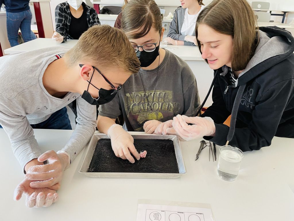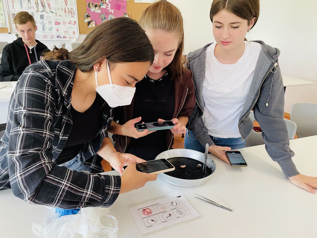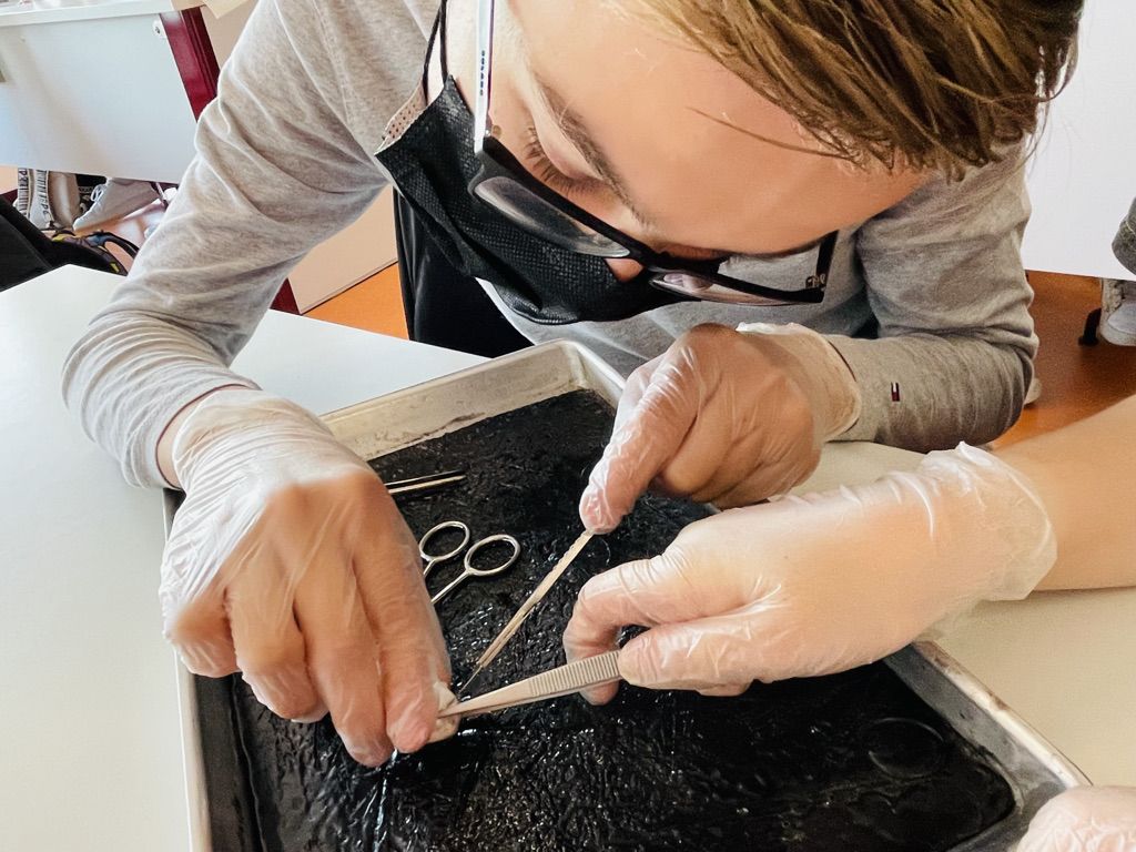 Biologie zum Anfassen und Begreifen. Die Klasse 8a sezierte Schweineaugen und war begeistert von der Komplexität dieses Sinnesorgans. Learning by doing!