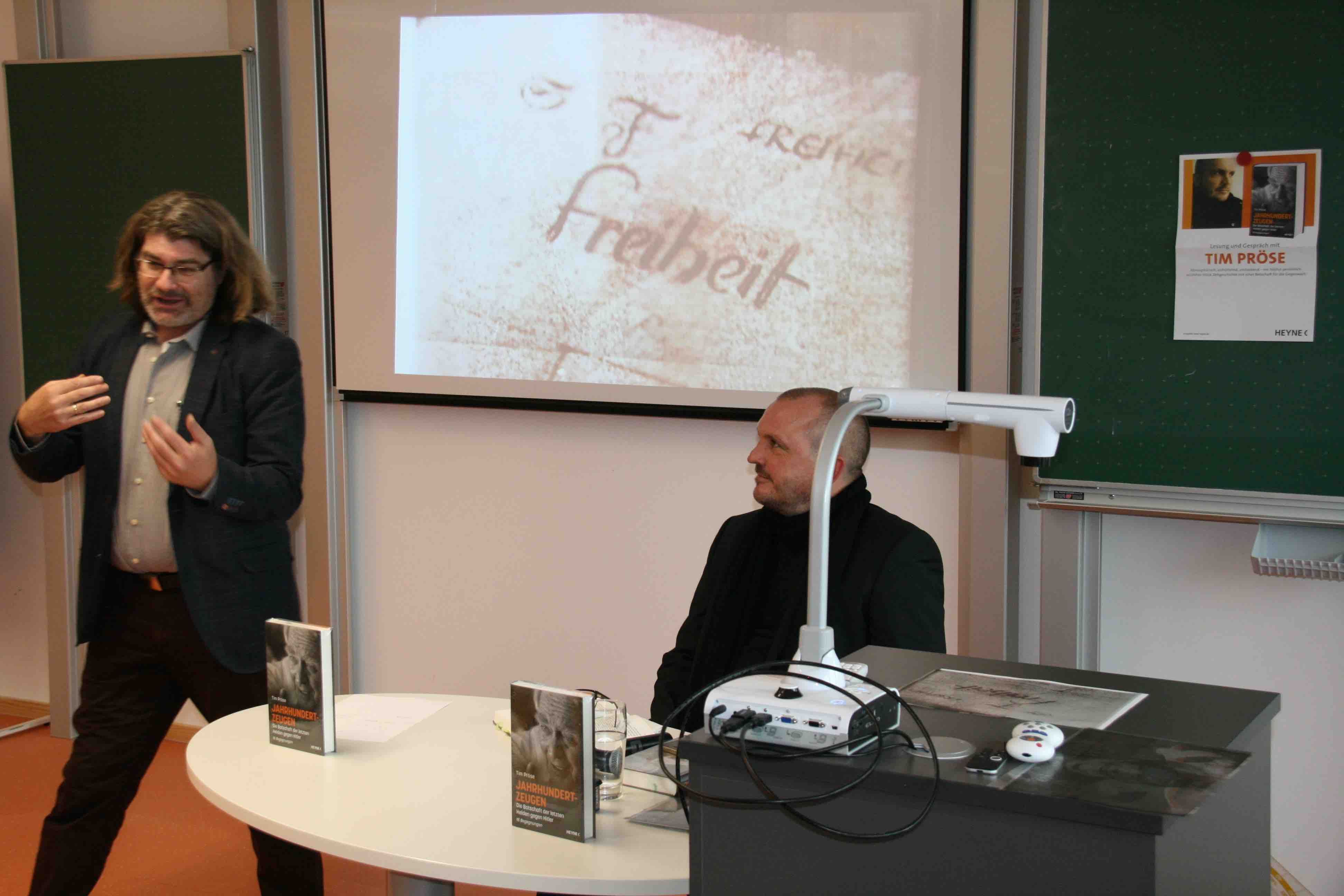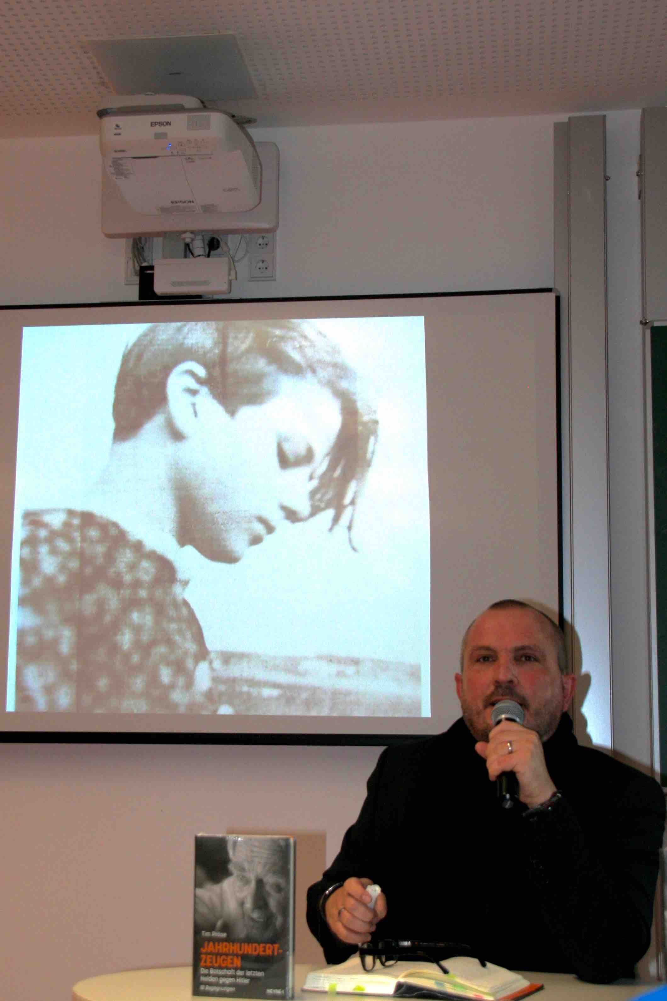 Zu einer Lesung aus seinem Buch „Jahrhundertzeugen – Die Botschaft der letzten Helden gegen Hitler“ gastierte der bekannte Journalist und Autor Tim Pröse am Sailer. Besonders mit der auf persönlichen Zeugnissen beruhenden und sehr einfühlsamen Schilderung der letzten Tage Sophie Scholls berührte Tim Pröse die Schülerinnen und Schüler der 10. Klassen.
