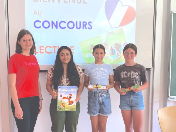 Dem Wettbewerb hatten sich zudem die Schülerinnen Teresa Rabini (7a) und Sina Wörle (7b) gestellt. Spätestens nach ihrem Auftritt und dem großen Applaus des Publikums war den Teilnehmerinnen klar, dass sich Aufregung und Mühe gelohnt haben. Die Jury, bestehend aus der ehemaligen „Grande Championne de lecture“, Julia Finster (Q11), Frau StRefin Alexandra Seitz und Frau StDin Beate Bestler-Relovsky freuten sich, allen eifrigen Vorleserinnen die wohlverdienten Preise überreichen zu dürfen.