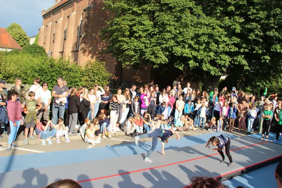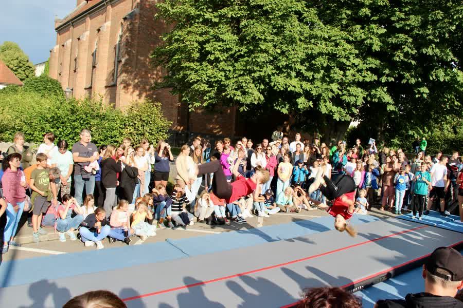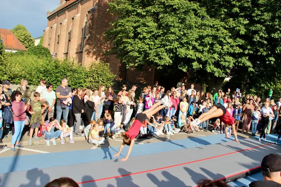 Trotz kühlem und regnerischem Wetter war unser (Straßen-)Sommerfest sehr gut besucht. Die zukünftigen Sailer-Schüler*innen waren ebenfalls mit dabei. Durch ihre atemberaubende Show sorgten unsere Turner für gut eine Stimmung.