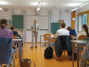 Die Schülerinnen und Schüler waren äußerst interessiert und stellten zahlreiche Fragen. Bei seinen Ausführungen ging Herr Nißl auch auf die Strafzwecke ein. Er gab einen Einblick in den beruflichen Weg zum Staatsanwalt. Außerdem sprach er über die aktuelle Diskussion um die Teillegalisierung von Cannabis, was ihm sehr am Herzen liegt.